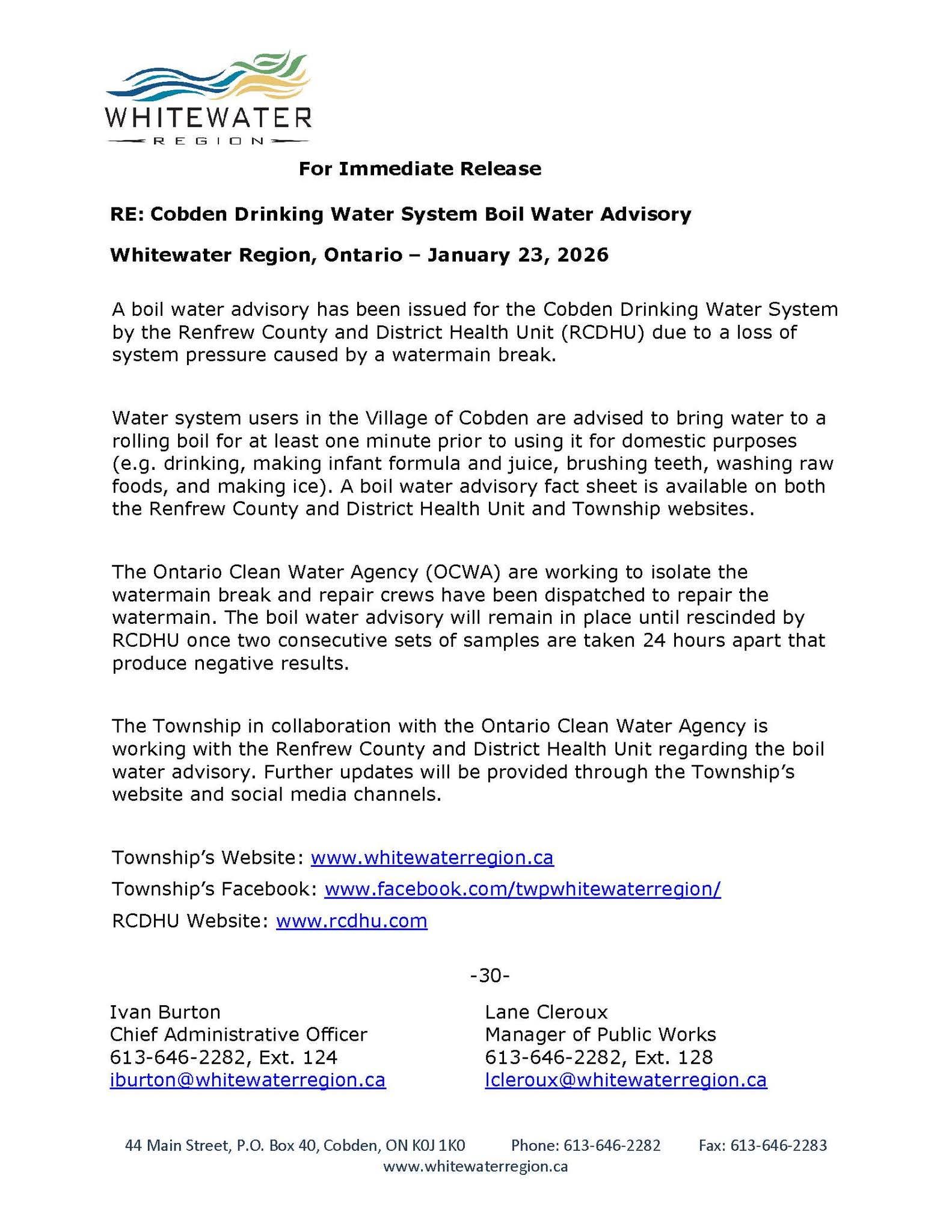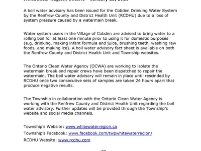 Cobden Drinking Water Advisory
